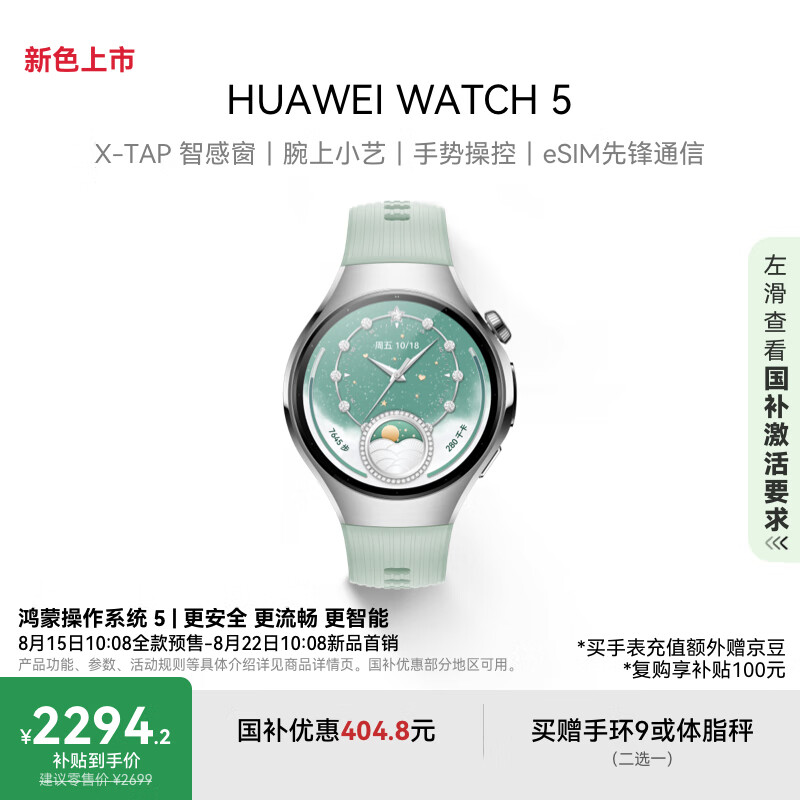 IT之家 8 月 15 日消息,华为 WATCH 5 全新星河蓝、极光绿配色于今日发布,现已开启预售,8 月 22 日 10:08 正式开售。